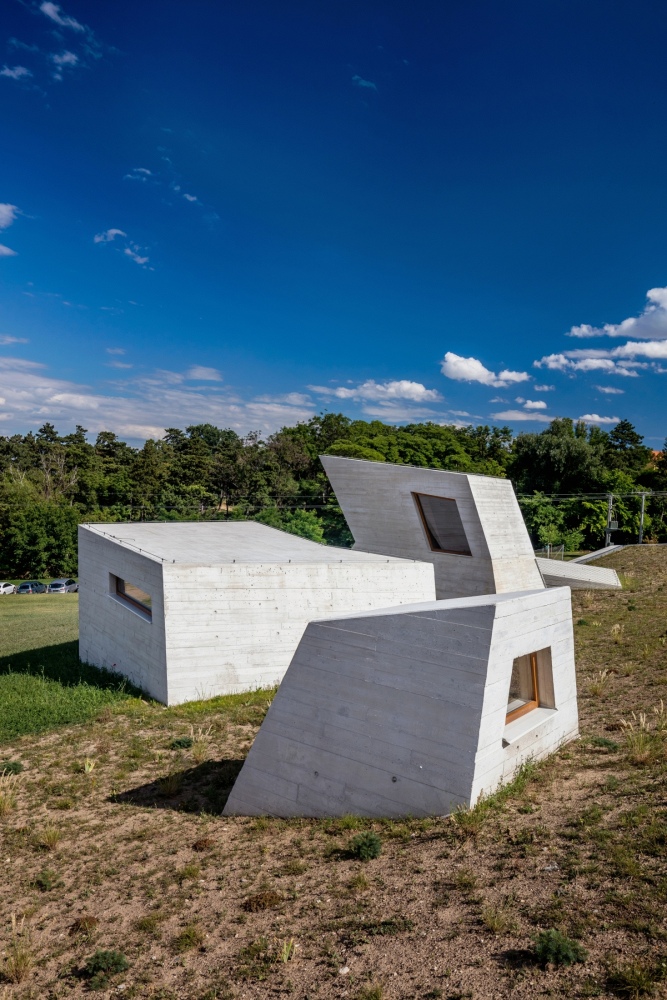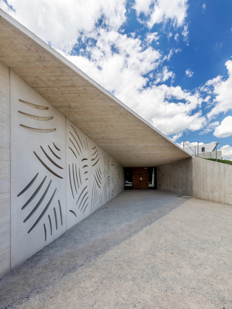 In addition to respecting the treasure underneath, the building was also designed to seamlessly blend into the external landscape. CEMEX technologists worked closely with the client to design a concrete mix that would allude to the limestone rock formations that Pálava is known for. Since it was important to maintain a uniform color, a CEMEX Chief Technologist remained onsite to supervise the placement of concretes for the towers as well as the entrance’s monolithic walls that transition into prefabricated elements with holes in the shape of mammoth tusks.